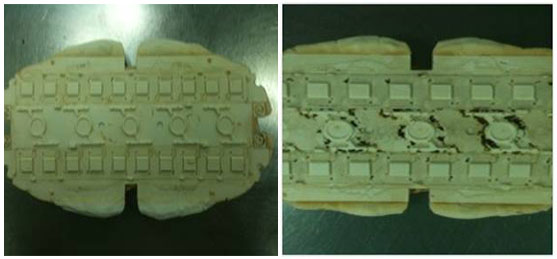 - 橡膠強而有結合力特性促使固化膠容易取出。